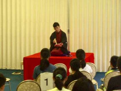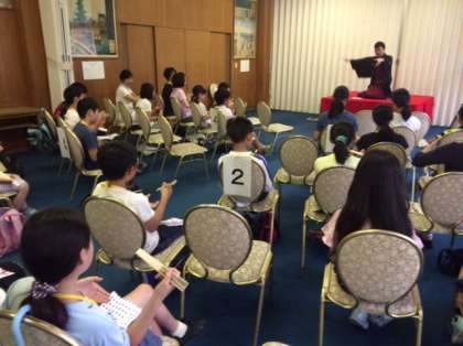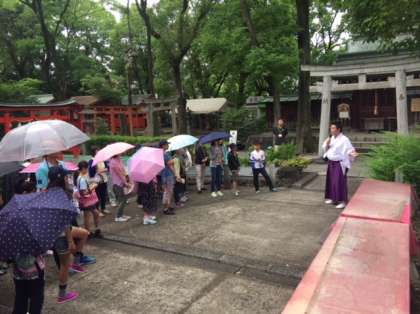 6月10日、生國魂神社において天王寺区ジュニアクラブの活動が行われました。今回は高津中学校卒の桂小留(ちろる)さんによる落語体験と生國魂神社境内の見学でした。
