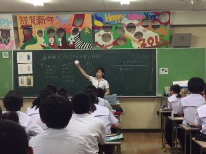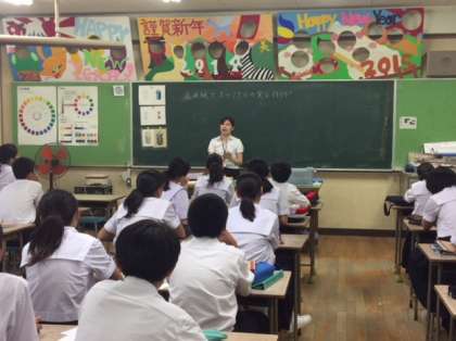 6時間目、美術の実習生が1年4組において研究授業を行いました。