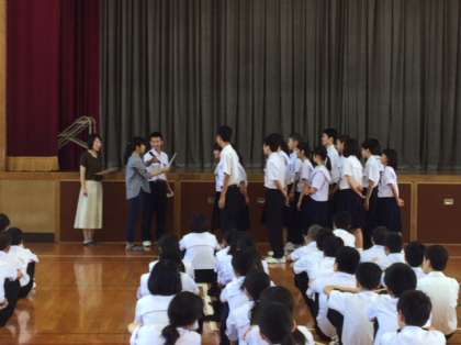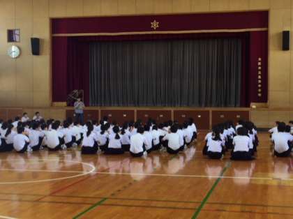 2年学年集会を行いました。6月8日に行った奈良での校外学習においてチームワークよく班活動を行い、ポイントが高かった班がベストチームワーク賞として表彰されました。また、作成したパンフレットが素晴らしかった班はベストパンフレット賞として表彰されました。よく頑張りました。