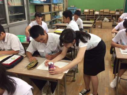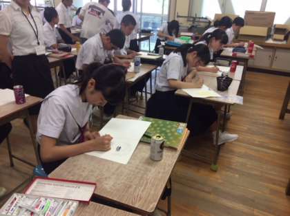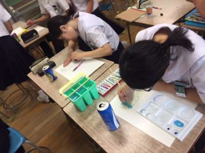 教育実習生から教えてもらえるのも最後になりました。写真は昨日の授業の様子です。空き缶のデッサンです。実習生のアドバイスを受けています。