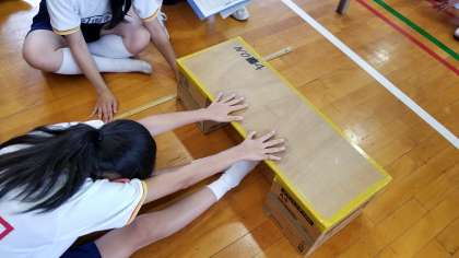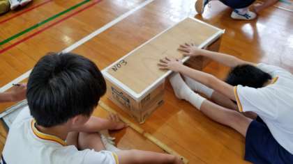 雨が降り、グラウンドのコンディションが悪いので、50m走とハンドボール投げは中止です。