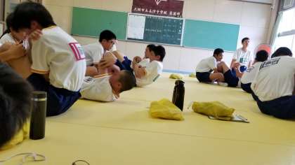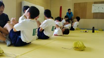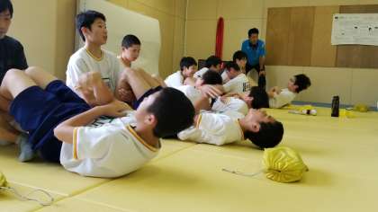 3階柔道場では、上体おこしを実施してます。30秒間の腹筋運動の回数を測定します。25秒を越えるあたりから