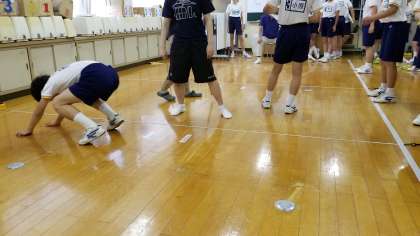 被服室では立ち幅跳びを実施しています。