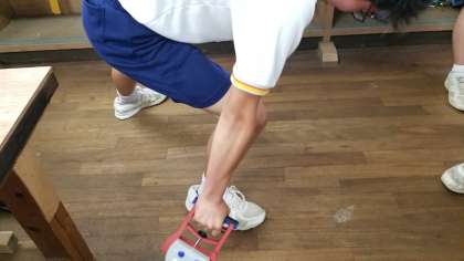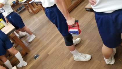 技術室では握力の測定をしています。声を出して真っ赤な顔して頑張っている生徒もいます。