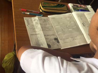 2年社会の授業の様子です。日本の昔の国の名前を学習しています。尾張・近江・河内・讃岐・土佐・出雲などその土地の名産を絡めながら覚えていきます。
