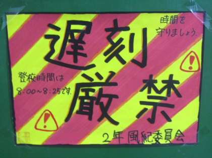 風紀委員によって様々ですが、いいポスターになっています。一部のみの紹介になりましたが、遅刻ゼロになればいいですね。