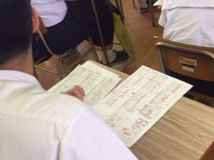 今日から期末テストの答案が返ってきます。3年社会の様子です。喜んでいる生徒や嘆いている生徒、それぞれですが、間違えたところはきちんとやり直しておきましょう。