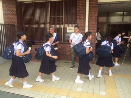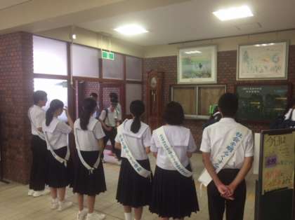 生徒会役員も一緒にタスキをかけて運動に加わり、挨拶をしました。最後はみんなで記念撮影をして終了しました。