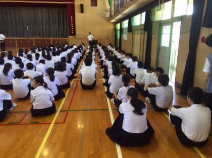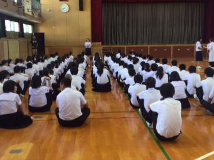 本日、全校集会を行いました。まず、坂田先生から対外試合の応援に行く際の注意点について話がありました。その後、校長講話では先週から始まった校長面接に関して、面接を受ける際の心構えなどについてふれられました。