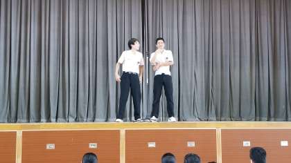 ピアノ演奏3組、歌1組、漫才2組、ダンス4組の発表がありました。みんな、自らの意思で舞台に立ってます。すばらしいことですね。なお、2次審査に進むグループの発表は明日にあります。