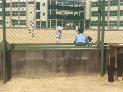 試合は2回に4点を先制され、苦しい展開になりました。ランナーが本塁憤死の惜しい場面もありましたが、逆に2点の追加点を許し、最終回に突入しました。最後は2死満塁まで攻めましたが、無得点のまま試合終了。0ー6で敗れました。しかし、よく頑張りました。3年生の皆さん、お疲れ様でした。