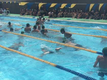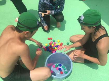 水中ではもの凄い争いが繰り広げられているようです。さあ、どのクラスが一番よく拾ったのでしょうか。体育委員が数えています。