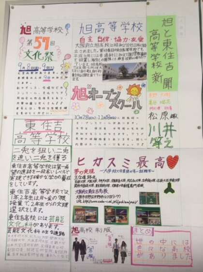 紹介する最後の新聞です。旭・東住吉・長吉・港南造形・生野・今宮の各高校です。皆さん、よく調べました。