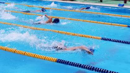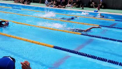第3種目は、25mクロールです。4種目目は、25m平泳ぎ、5 種目目は、25m1minuteです。この競技はどの泳法でもいいので、足をつかずゴールタイムが1分に近い選手が勝ちです。
