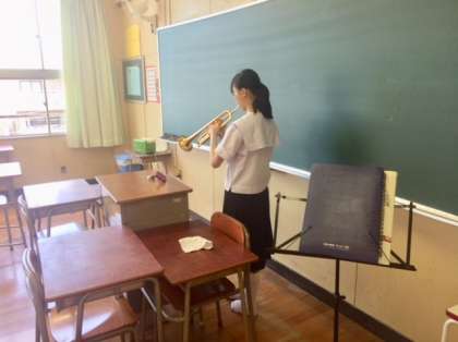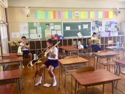 吹奏楽部の様子です。パートに分かれて教室などで練習しています。