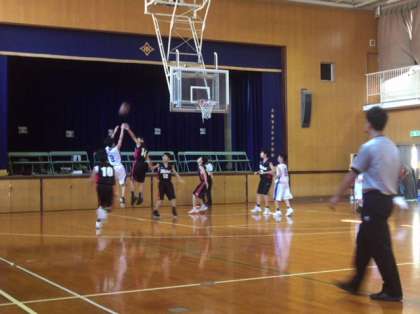 第2ピリオド終了。51ー15とリードを広げました。動きはいいですが、少し相手にボールがわたるようになっています。頑張りましょう。