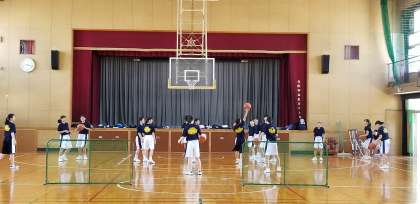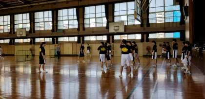 体育館では、女子バスケットボール部が、明日の試合に向けて3年生中心に頑張ってます。明日、練習の成果を発揮してくださいね。