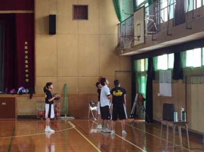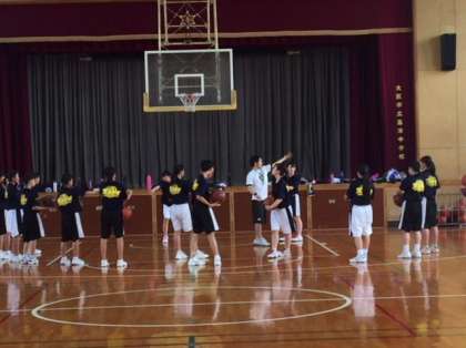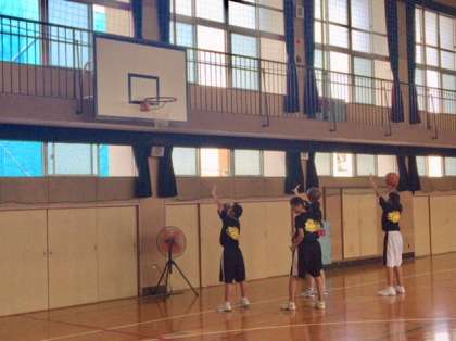 女子バスケットボール部の練習の様子です。ゴール下からのシュートの練習です。繰り返し行い、体に覚え込ませましょう。