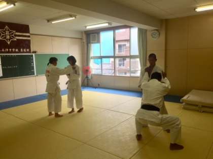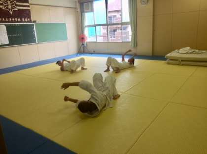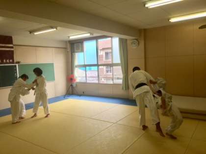 柔道部は人数が少ないですが、顧問の先生と一緒に頑張っています。
