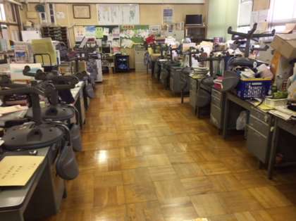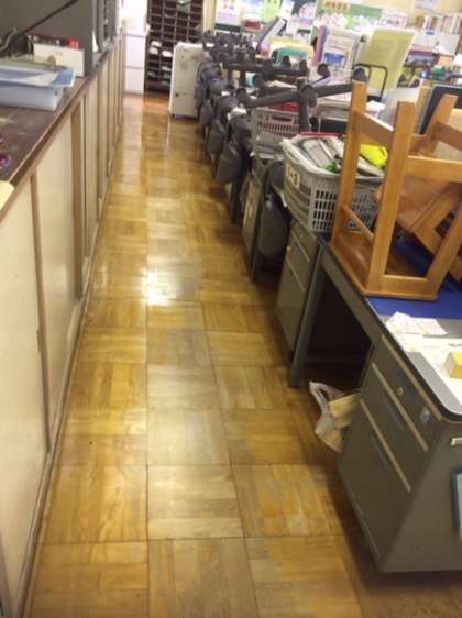 職員室、事務室、校長室のワックスがけを行いました。ピカピカになりました。管理作業員さん、ありがとうこざいました。
