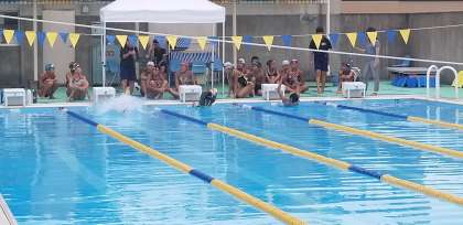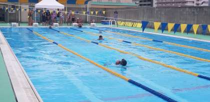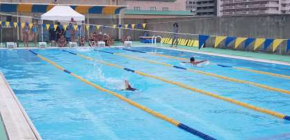 プールでは、今日も水泳部が泳いでいます。明後日からの試合に向けて、リレーの練習をしています。チーム力を発揮してくださいね。