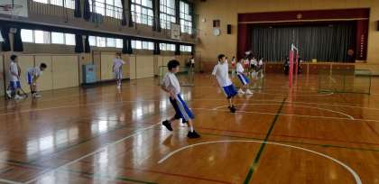 男子バスケットボール部は、基本動作の確認をしています。 単純でしんどい練習ですが、がんばれ!