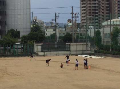 休業日明け、陸上部が練習しています。天候が不安定です。落雷も各地であるようです。少しでも雷の音が聞こえたら、油断せずに避難しましょう。