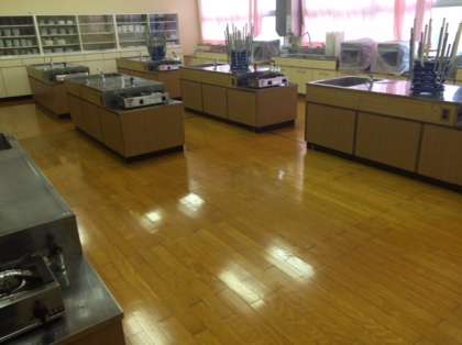 管理作業員さんが家庭科調理室と被服室のワックスがけを行いました。ピカピカになりました。ありがとうこざいました。