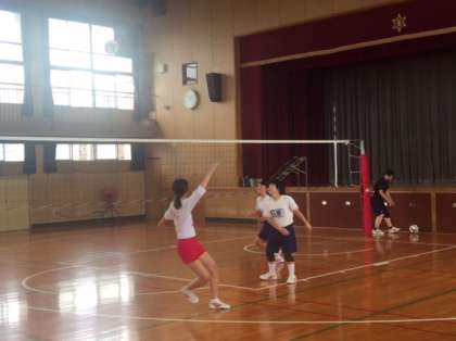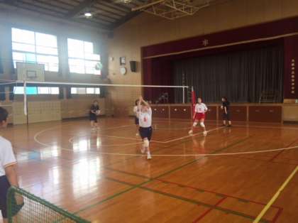 バレーボール同好会は公式戦に向けて、練習に熱が入ります。保護者の方もコーチに来ていただいています。ありがとうこざいます。