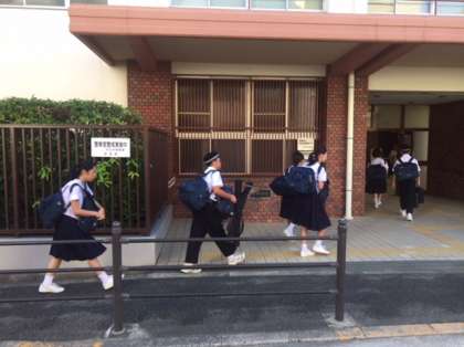 9月3日、登校時間帯です。雲ひとつない快晴です。少しだけしのぎやすくなりました。皆さん、今週も元気に頑張りましょう。