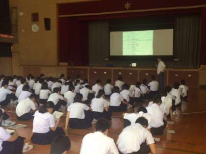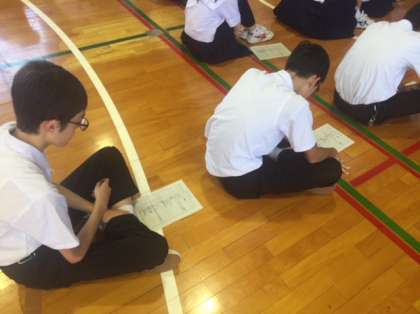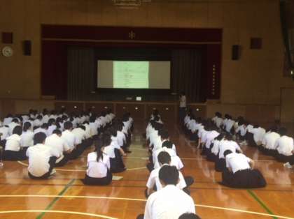 1時間目、3年生は体育館で進路学習を行いました。進路主事の鈴木先生から今後の進路のスケジュールについて説明があり、進路決定が間近に迫ってきているという緊張感が感じられました。3年生の皆さん、気を引き締めていきましょう。