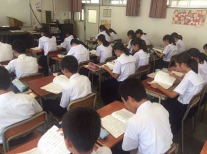 2年音楽の授業の様子です。体育大会も近づいてきましたので校歌と生徒会歌の練習を繰り返し行っています。その後、「大切なもの」という曲を三部合唱で練習しました。なかなかきれいに合唱出来ていました。