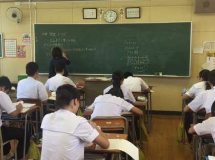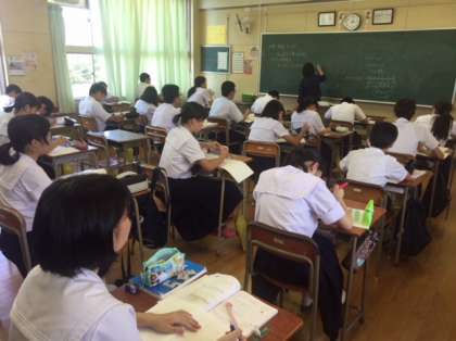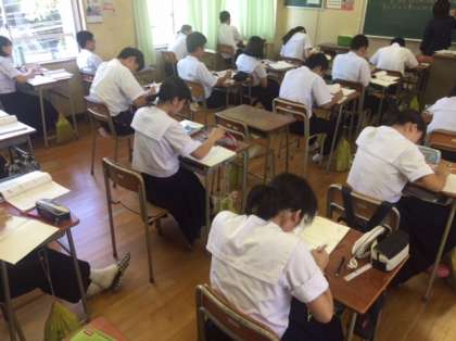 3年数学の授業の様子です。2次関数の学習を行っています。例題をもとにきめ細かく説明がありました。どんどん数学も難しくなっていきますね。