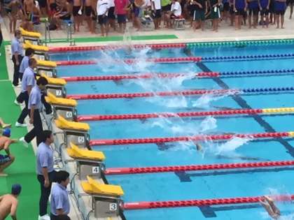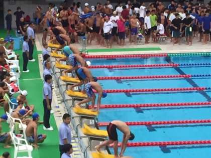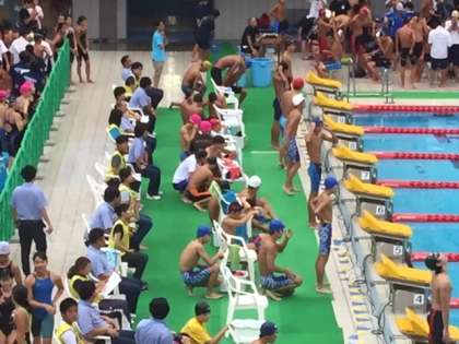 大阪プールにおいて大阪府水泳競技大会の2日目が行われました。今日はリレーが中心です。