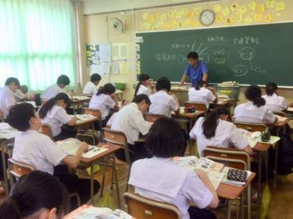2年技術の授業の様子です。情報に関する技術ということで、生活・社会・産業の中で無くてはならないものになっています。POSシステム、QRコード、センサー、マイコンなどたくさんのキーワードについて、身近な具体的例を取り上げて学習しました。