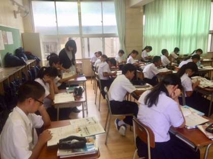 1年理科の授業の様子です。光が通るときのようすということで今日は「全反射」について学習しました。利用例としては光ファイバーなどがあります。実験の映像も見ました。