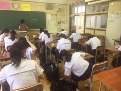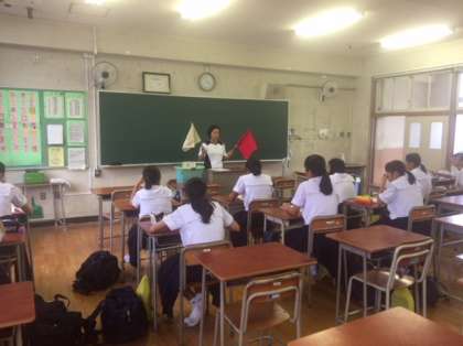 決勝審判・出発・美化の各係打合せの様子です。実際に使う用具の説明もありました。