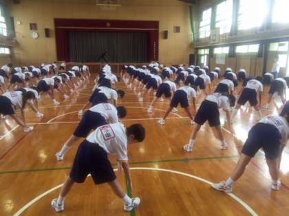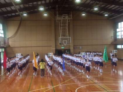 1年生にとっては中学校での初めての体育大会。行進や体操の精度を高めていかなければなりません。2・3年生にしっかりとついていけるように頑張りましょう。