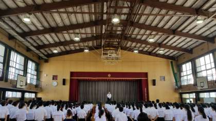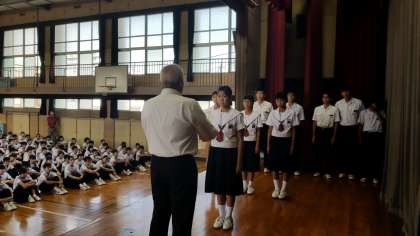 本日、全校集会が行われました。体育大会の練習が始まっています。本日も昼から合同練習があります。それぞれの学年の最終の形や目標があると思いますが、それをジグソーパズルの完成形として考えてください。ジグソーパズルは1つのピースでも、なかったら完成しません。自分はどこの役割の1つのピースであるかを考えて行動して、みんなで成功させましょう。