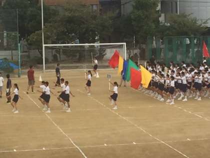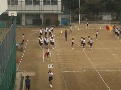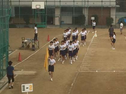 全校一斉に行進を合わせるのは今回が初めてになります。まだ下を向く、背筋をのばすなと直すべき点がありますね。頑張りましょう。