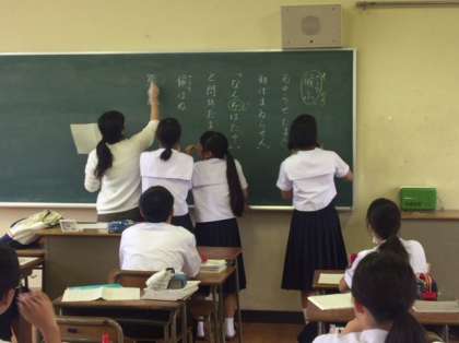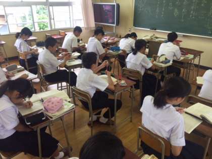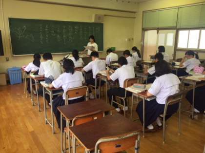 2年国語の授業の様子です。習熟度別少人数授業を行っています。古典の学習です。平家物語〜敦盛の最期〜を現代仮名遣いにし、訳していきます。「ぞ・・・ける」が出てきましたので係り結びの説明がありました。