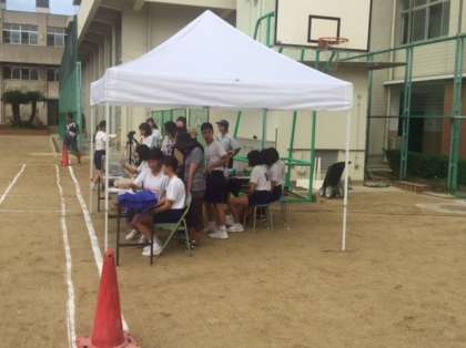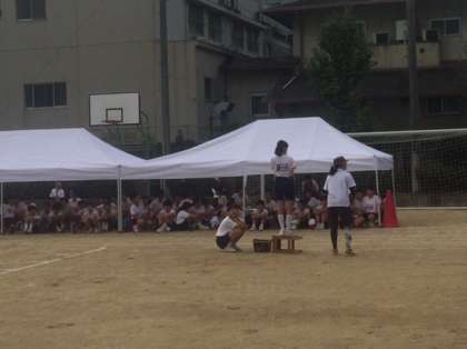 全員体操の後は、いったん退場して係生徒が所定の位置につきます