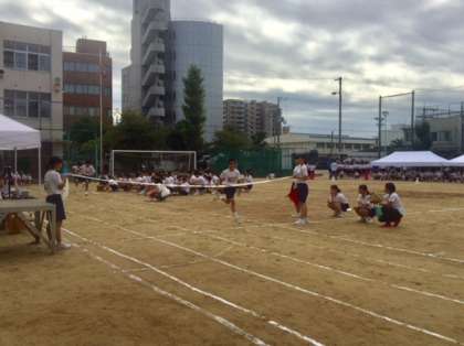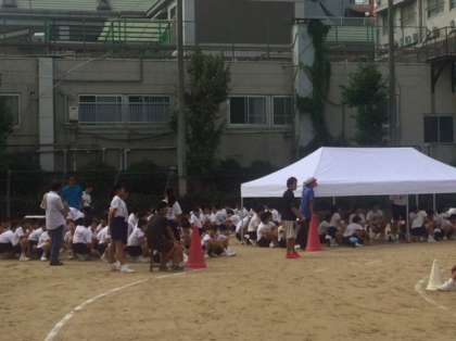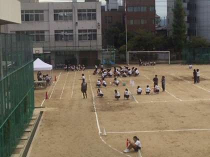 放送係の生徒の案内で順次競技の練習が進んでいきます。みんな、キビキビと動いています。