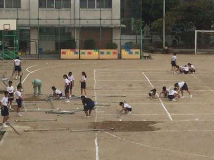 本日午後、体育大会の前日準備を行いました。係生徒は、まず体育館に集合し、指示を受けました。
