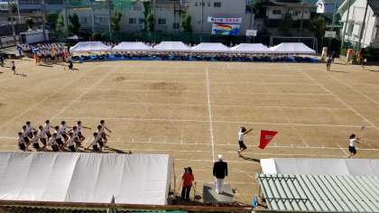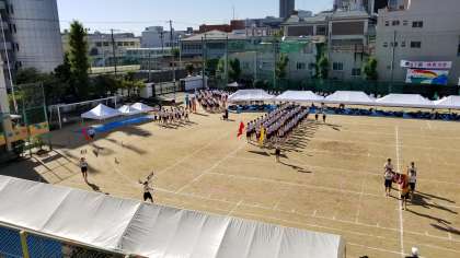 生徒会を先頭に、3年、2年、1年としっかり足踏みして入場行進をしています。
