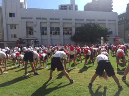 台風の影響で延期になった味原小学校の運動会が本日行われました。素晴らしい天気になり、芝生の上での運動会です。みんな笑顔で頑張っていました。