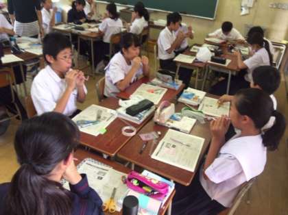 この時間の主題は「音の大小と高低」です。簡単な楽器(ストロー笛)をつくり、音の大小と高低の変え方を調べた後、オシロスコープにて条件を変えた音の波形を調べることによって、音の大小と高低が振幅と振動数によって決まることを学習します。
