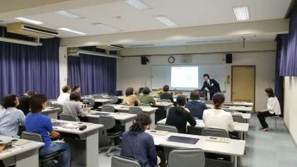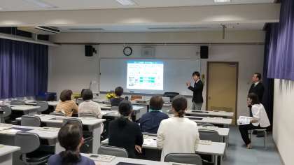 LL教室での大阪成蹊高校、プール学院高校の説明会の様子です。