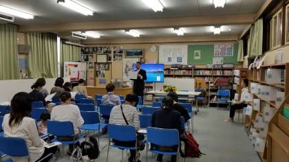 図書室での大阪産業高校、上宮高校の説明会の様子です。たくさんの来場ありがとうございます。