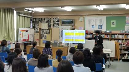 図書室での近畿大学附属高校、大阪学芸高校の説明会の様子です。たくさんの来場ありがとうございます。